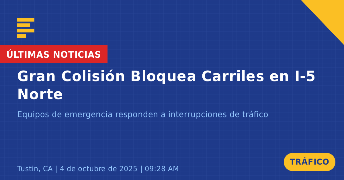 Un accidente de tráfico que involucró a tres vehículos ocurrió hoy en la Autopista 5 Norte (I-5 N) cerca de la Ruta Estatal 55 en Tustin, CA, lo que provocó importantes interrupciones en el tráfico durante la hora pico de la mañana. El incidente involucró un Scion TC gris, un SUV Lexus gris y un Hyundai Sonata blanco, con dos de los vehículos sufriendo daños frontales significativos.