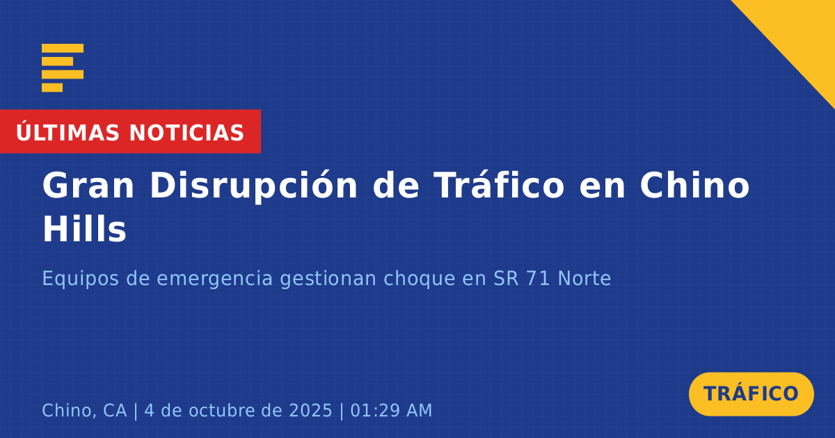 Se aconseja a los automovilistas que viajan cerca de la entrada de Chino Hills Parkway a la Ruta Estatal 71 Norte que busquen rutas alternas para evitar el embotellamiento causado por este incidente. Los equipos de emergencia están trabajando para despejar la escena y restaurar el flujo normal de tráfico lo más rápido posible.