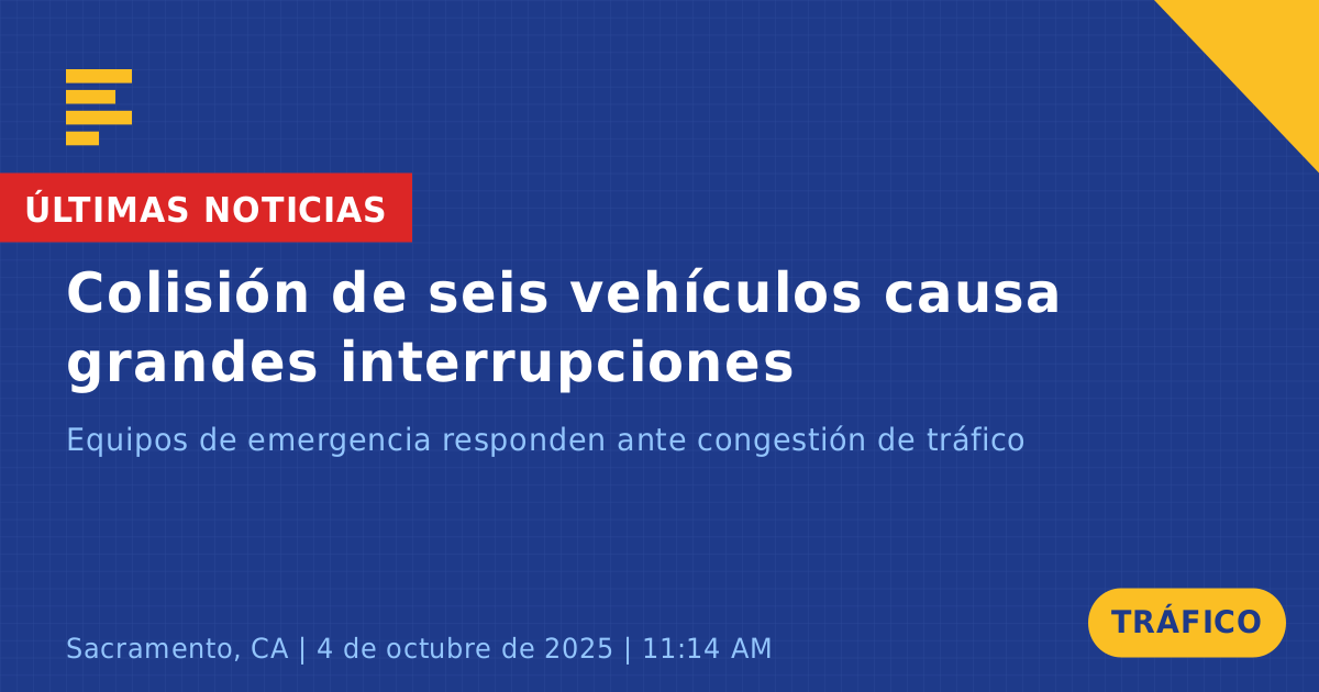 Un accidente de tráfico ocurrió hoy en la intersección de Watt Avenue y Auburn Boulevard en Sacramento, CA, involucrando un total de seis vehículos, incluidos una camioneta Dodge azul, una Dodge 1500 azul, un Crown Victoria negro y una SUV pequeña. El incidente provocó interrupciones significativas en el flujo de tráfico, resultando en el cierre de carriles y congestión en la zona.