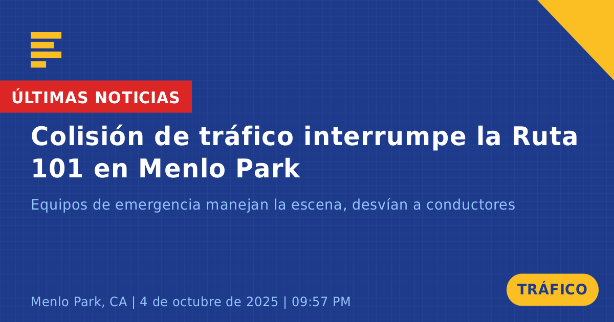 Una colisión de tráfico en la autopista US 101 Sur en Menlo Park, CA, causó importantes interrupciones en el flujo de tráfico hoy. El incidente involucró dos vehículos: un Toyota blanco y una minivan de color oscuro. La colisión ocurrió alrededor de las 9:58 PM, bloqueando inicialmente el carril 3.
