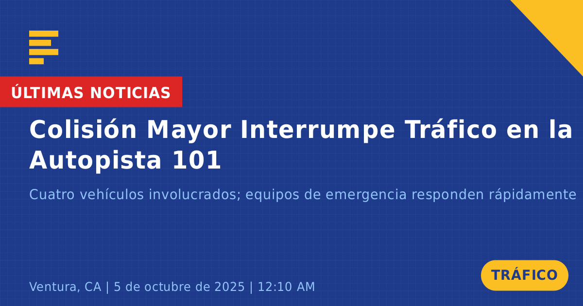 Un importante accidente de tráfico ocurrió hoy en la autopista US 101 Sur cerca de West Main Street en Ventura, CA, lo que provocó considerables interrupciones en el tráfico. El incidente involucró a cuatro vehículos, incluyendo un Lexus IS300 plateado, un Acura negro, un vehículo desconocido y un vehículo separado. La colisión fue reportada alrededor de las 12:11 AM, y poco después se observó que uno de los vehículos estaba en llamas.