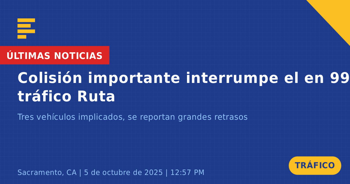 Un importante choque de tráfico ocurrió hoy en la Ruta Estatal 99 Norte, a la altura de la 5ta Avenida en Sacramento, CA, causando grandes interrupciones en el tráfico. El incidente involucró a tres vehículos: un Toyota RAV4 plateado, un Toyota Prius y una motocicleta. El choque fue reportado poco después del mediodía, lo que llevó al bloqueo de al menos dos carriles.