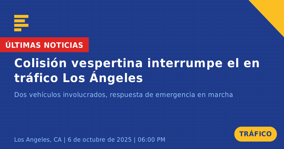 Un accidente de tráfico ocurrió hoy en la intersección de Fraser Avenue y Telegraph Road en Los Ángeles, CA, involucrando a dos vehículos: una camioneta Ford F150 gris y un Jeep Grand Cherokee blanco. El incidente tuvo lugar alrededor de las 6:01 PM, resultando en bloqueos de carriles que afectaron el flujo de tráfico en la zona.