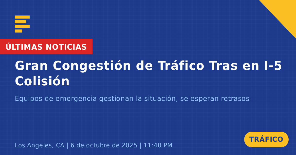 Una colisión de tráfico en la Interestatal 5 Norte (I-5 N) en la transición hacia la Ruta Estatal 110 Norte (SR 110 N) en Los Ángeles, CA, causó notables interrupciones en el tráfico hoy. El incidente, que involucró un vehículo desconocido, fue reportado alrededor de las 11:42 PM. Los equipos de respuesta de emergencia llegaron rápidamente para gestionar la situación y garantizar la seguridad de todos los conductores.