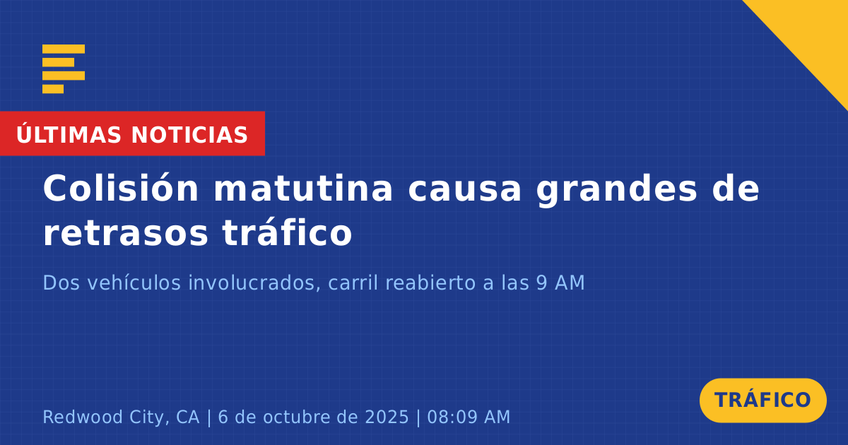 Los automovilistas que viajan por Redwood City, CA, deben permanecer atentos y esperar posibles retrasos residuales a medida que el tráfico reanude su flujo normal tras este incidente de tráfico. La Patrulla de Caminos de California continúa monitoreando la situación para garantizar un paso seguro para todos los conductores.