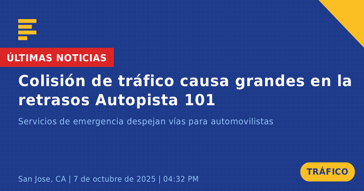 Un accidente de tráfico que involucró a dos vehículos ocurrió hoy en la autopista US 101 Sur, cerca de Brokaw Road en San José, CA. El incidente fue reportado aproximadamente a las 4:33 PM e involucró a una camioneta GMC 1500 de color gris y a un sedán Honda de color blanco. La colisión bloqueó inicialmente los carriles uno y dos, causando una congestión significativa para los conductores durante la tarde.