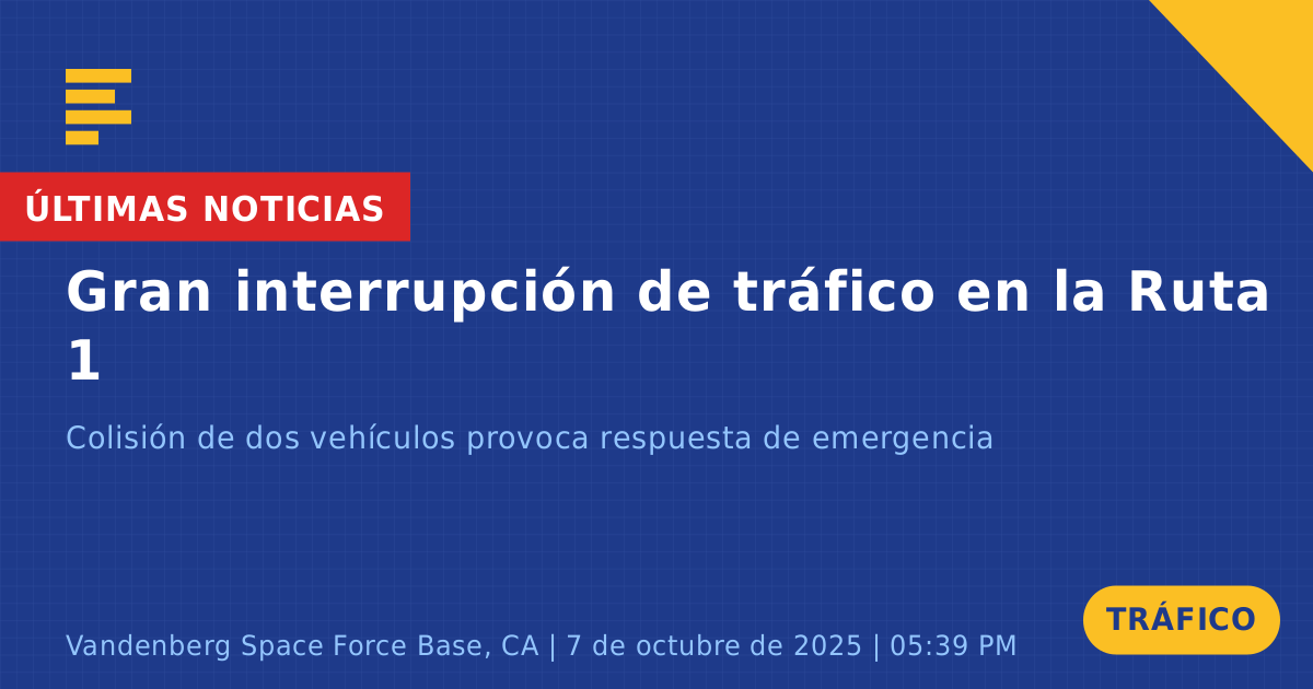 Una colisión de tráfico en la Ruta Estatal 1 (SR-1) en la Base de Fuerza Espacial Vandenberg, CA, causó importantes interrupciones en el tráfico hoy. El incidente involucró a dos vehículos: un sedán Honda color marrón y un sedán Lexus color marrón, y ocurrió alrededor de las 5:39 PM. Tras el choque, todos los carriles en dirección sur se cerraron temporalmente, lo que provocó retrasos para los conductores en la zona.