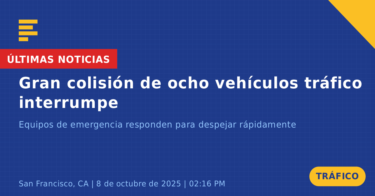 Un importante accidente de tráfico que involucró a ocho vehículos ocurrió hoy en la autopista US 101 Norte, en la salida de San Bruno Avenue, en San Francisco, CA. El incidente tuvo lugar alrededor de las 2:17 PM, causando interrupciones significativas en el tráfico en la zona.